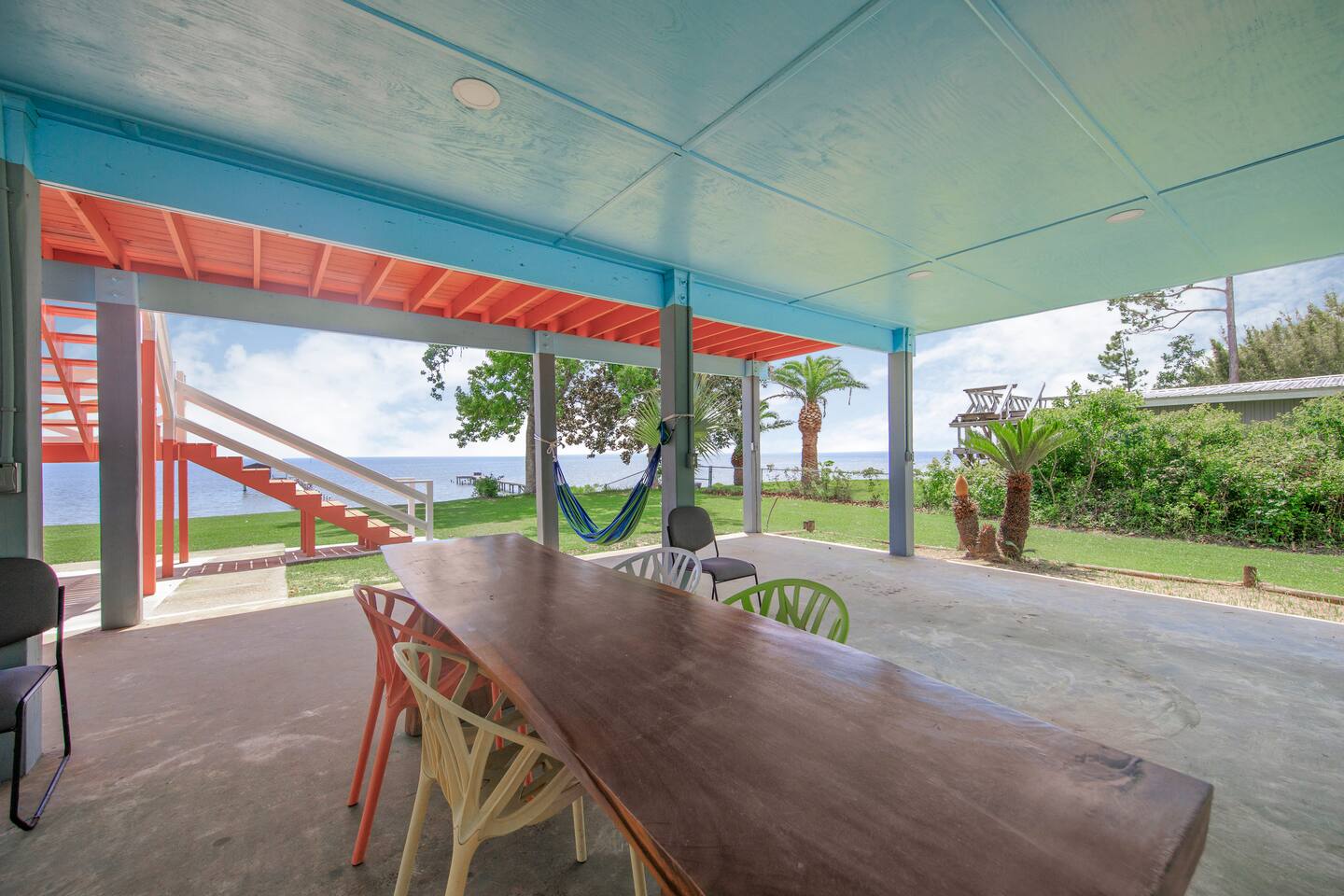Under the house, there is a large patio sitting area for outdoor dining and barbecuing.