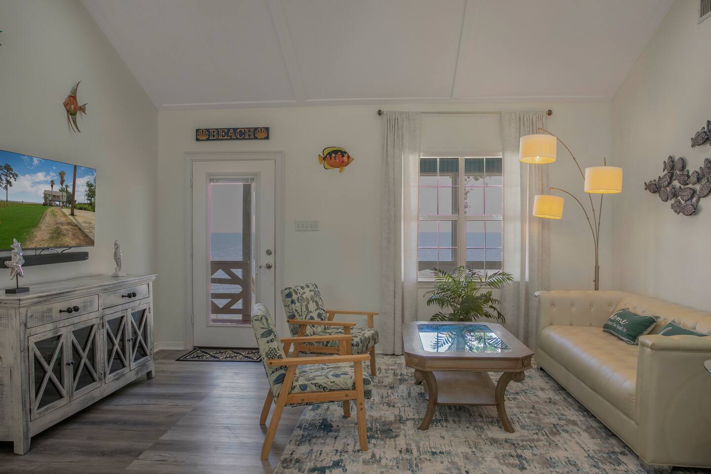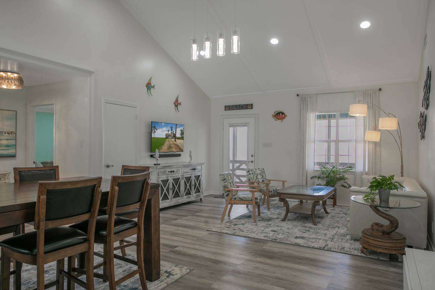 The open concept layout allows everyone to gather and enjoy each other’s company while making lasting memories. Playing board games, streaming with our Wi-Fi access, or taking a nice walk under the shady – pine lined drive path leading to the pier, there are plenty of activities to keep everyone entertained.